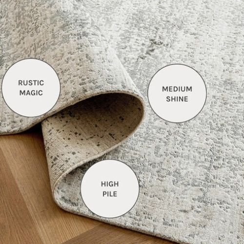 Give your space a refined upgrade with this abstract rug that brings together rustic elegance and modern softness. Blending shades of beige and grey, the design features a gently faded traditional pattern that adds quiet depth and style. Crafted from a luxurious mix of art silk, combed wool, and textured cotton, its subtle shine gives your interior a warm, polished finish.