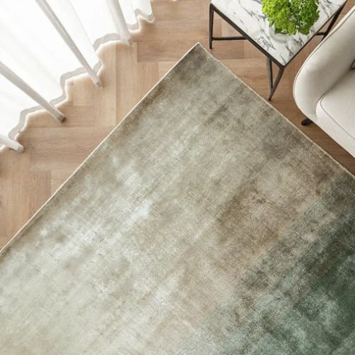Infuse your interior with gentle color transitions and a touch of glamour. This ombré rug blends soothing shades of sage, mint green, and beige, creating a serene gradient effect across the surface. Its rich art silk construction offers a glossy, light-catching finish and a dense, luxurious pile that feels as good as it looks.