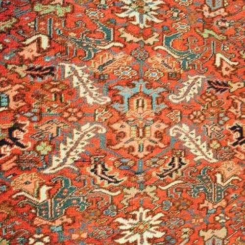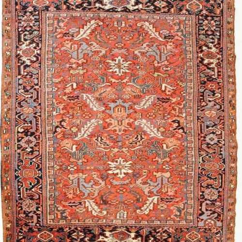 This Antique Heriz Carpet from around 1880 displays masterful craftsmanship and timeless beauty. Its broad border frames a rich palette of red, blue, and cream, blended seamlessly by a skilled dyer. The bold red brings warmth, while deep blue adds elegance and cream softens the overall look. Intricate motifs reflect the cultural soul of the Heriz region. Each design element speaks to tradition, woven with expert precision.
