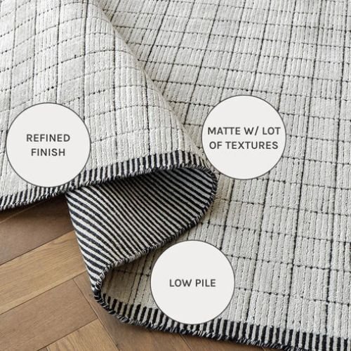 Refresh your space instantly with this striking black and white rug, featuring a classic grid design that adds modern structure to any room. The textured surface and low-pile border offer visual balance, while the blend of matte art silk and combed wool ensures softness and durability underfoot.