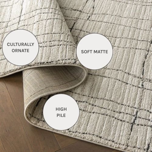 Introduce movement and warmth to your interior with this beautifully textured rug in beige and charcoal tones. The softly waved grid pattern, reminiscent of hand-drawn lines, adds a relaxed rhythm to the space. Crafted from plush polyester with a matte finish, it offers deep comfort underfoot while maintaining a calm, modern aesthetic.