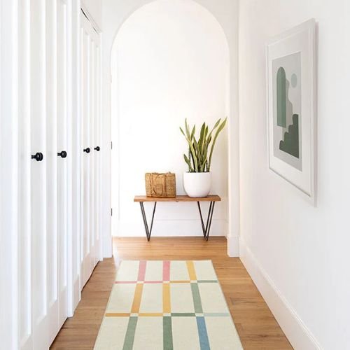 Ruggable rugs feature a washable two-piece system—just unroll, stick, and wash when needed. The rug covers are water-resistant, interchangeable, and available in two textures. Rug pads offer non-slip grip, floor protection, and come in standard or cushioned options. Both parts are made from durable, recycled materials for comfort and sustainability.