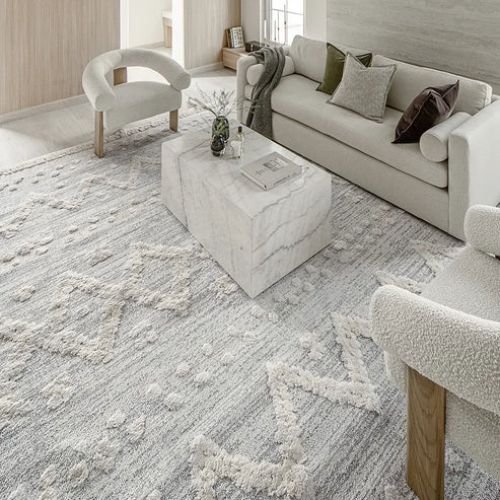 The Zahra Snow carpet combines modern charm with antique elegance through its soft, distressed look.