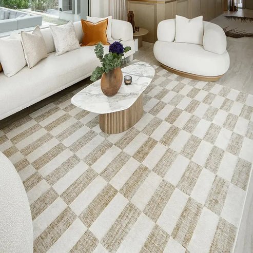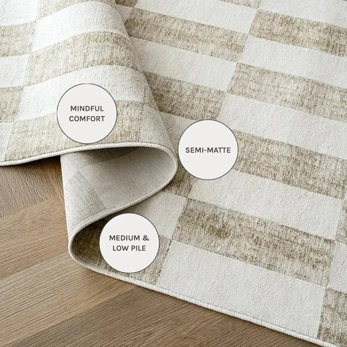 In a neutral Beige that will complement any color scheme, this geometric rug does it all with texture. A mixed-cut pile creates an all over checkerboard pattern to give it a modern flavour you’ll love.