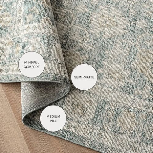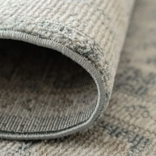 Blending dark denim blue with taupe and beige, this carpet brings a vintage vibe to any space.